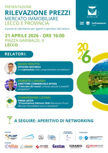 Si comunica che martedì 21 aprile dalle ore 16.00 presso la sede di Confcommercio Lecco, Piazza Garibaldi 4 verrà presentato il nuovo Listino Immobiliare 2026 di Lecco e provincia realizzato da F.I.M.A.A. Lecco per analizzare la dinamica delle compravendite nel territorio e per supportare acquirenti e venditori nella definizione del prezzo dell’immobile da trattare.