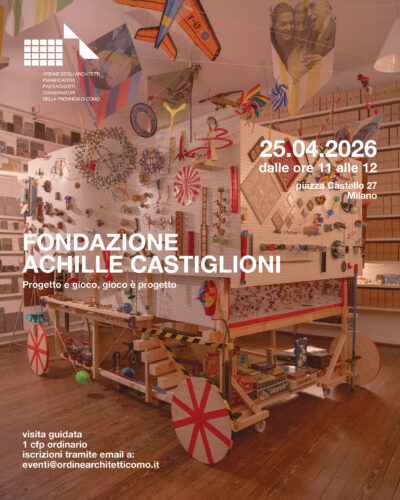 Sabato 25 aprile (durante la Milano Design Week) l’Ordine degli Architetti PPC di Como propone agli iscritti di tutti gli Ordini provinciali una visita guidata presso la Fondazione Achille Castiglioni a Milano.