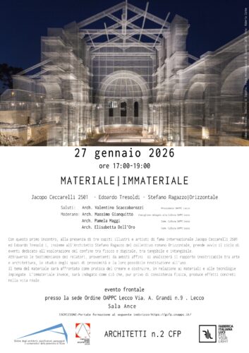 L’Ordine degli Architetti PPC di Lecco e la sua Fondazione organizzano l’evento dal titolo “MATERIALE|IMMATERIALE ”